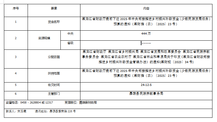 黑龙江省财政厅提前下达2025年中央衔接推进乡村振兴补助资金(少数民族发展任务)预算的通知 黑财指(农)〔2025〕23号