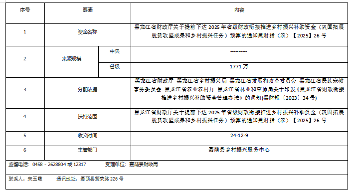 黑龙江省财政厅关于提前下达2025年省级财政衔接推进乡村振兴补助资金(巩固拓展脱贫攻坚成果和乡村振兴任务)预算的通知-黑财指(农)〔2025〕26号