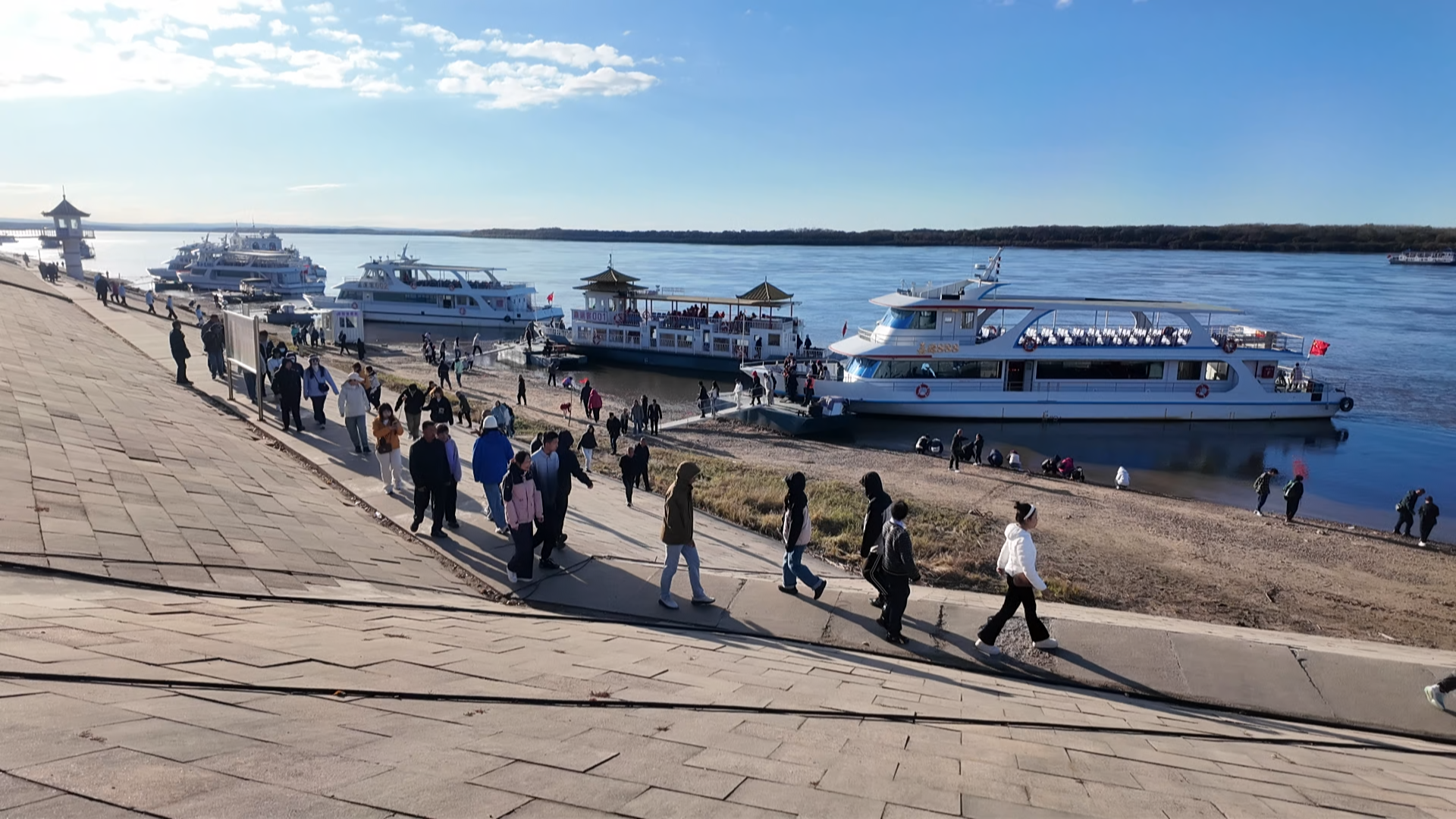 为延长游客停留时间,嘉荫县还推出“界碑打卡+五花山赏景”“界碑打卡+界江游船”等特色线路,游客在打卡界碑后,可乘船游览黑龙江,欣赏两岸的五花山美景,或沿着江滨步道徒步,感受“一江碧水绕青山,界碑矗立守家园”的意境。