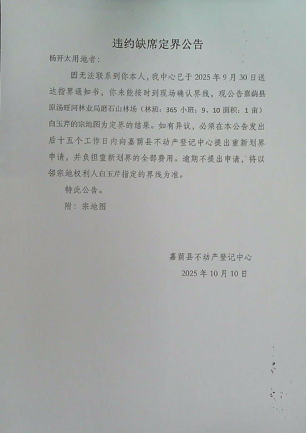 违约缺席定界公告