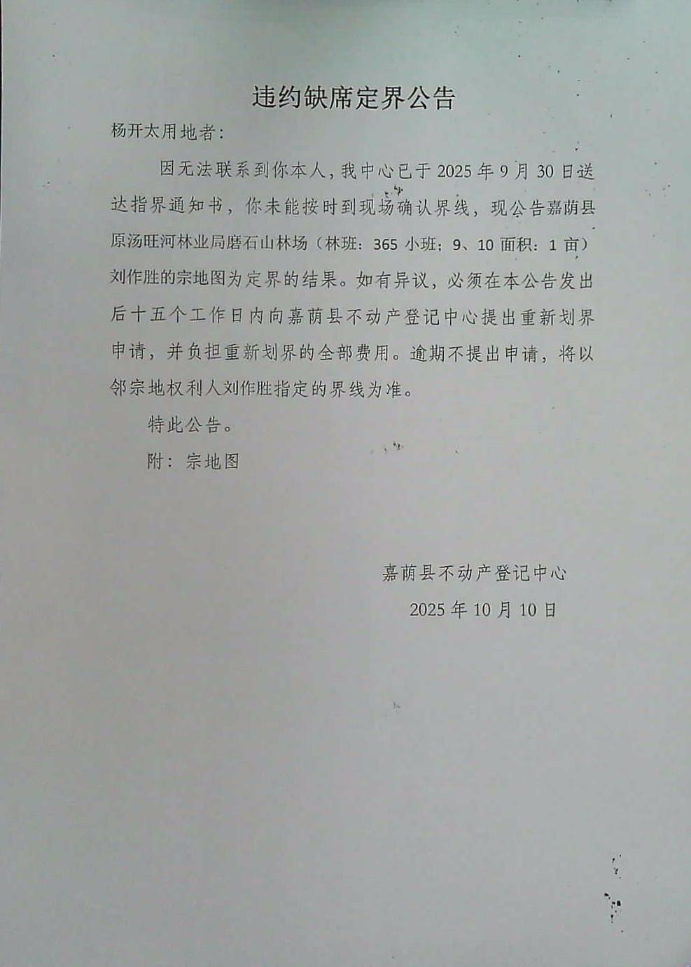 违约缺席定界公告