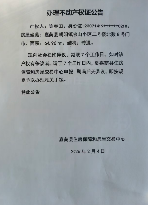 办理不动产权证公告