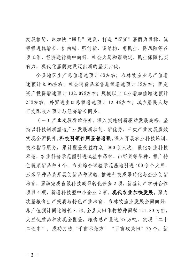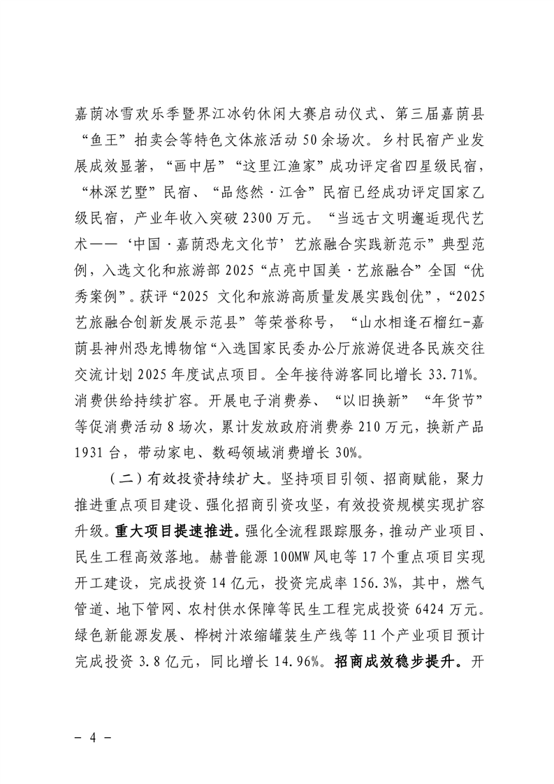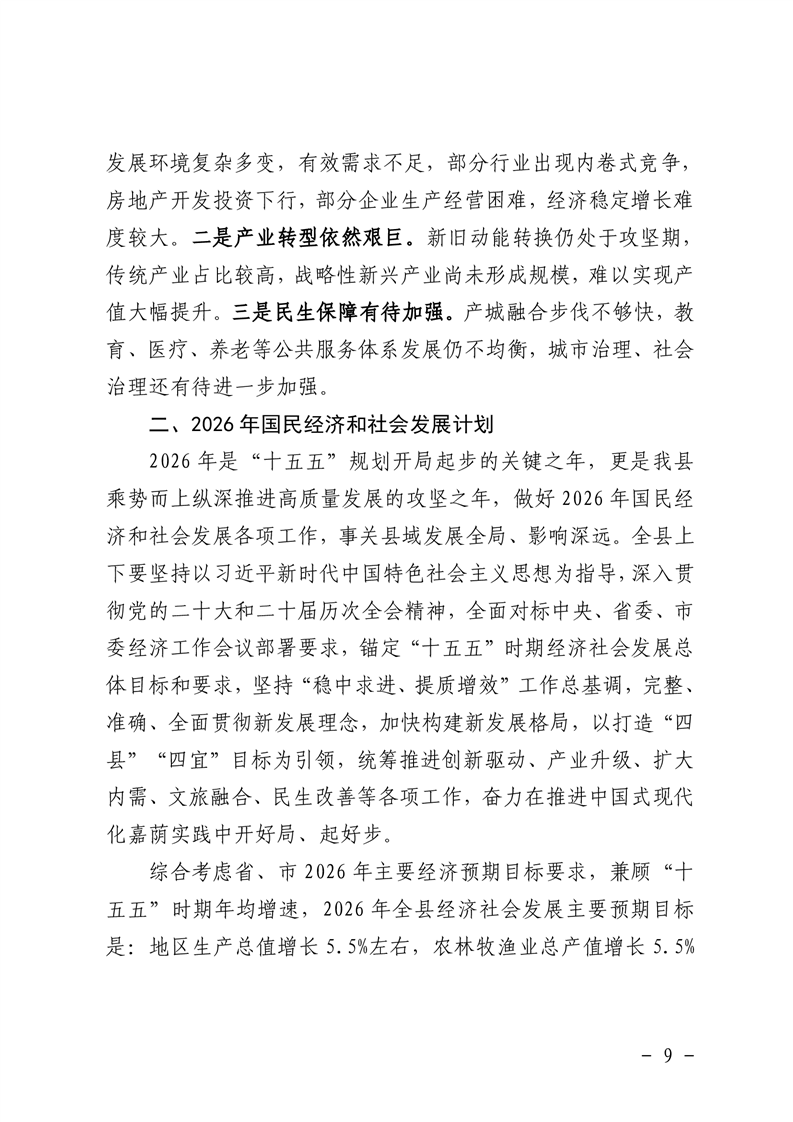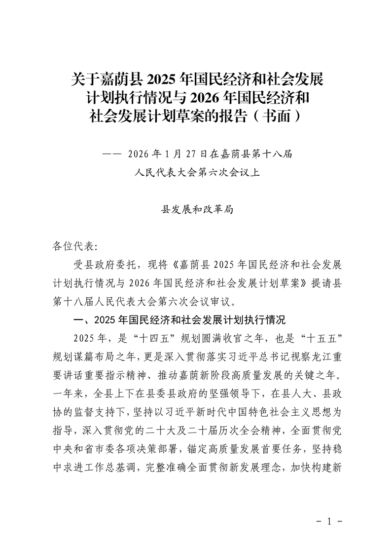 关于嘉荫县2025年国民经济和社会发展计划执行情况与2026年国民经济和社会发展计划草案的报告(书面)