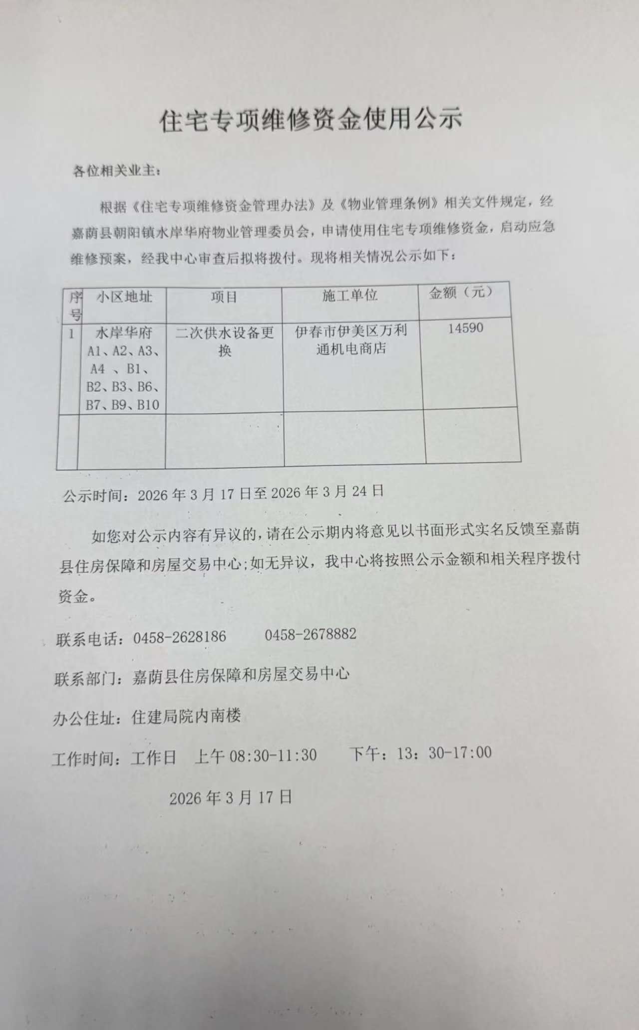 住宅专项资金使用公示