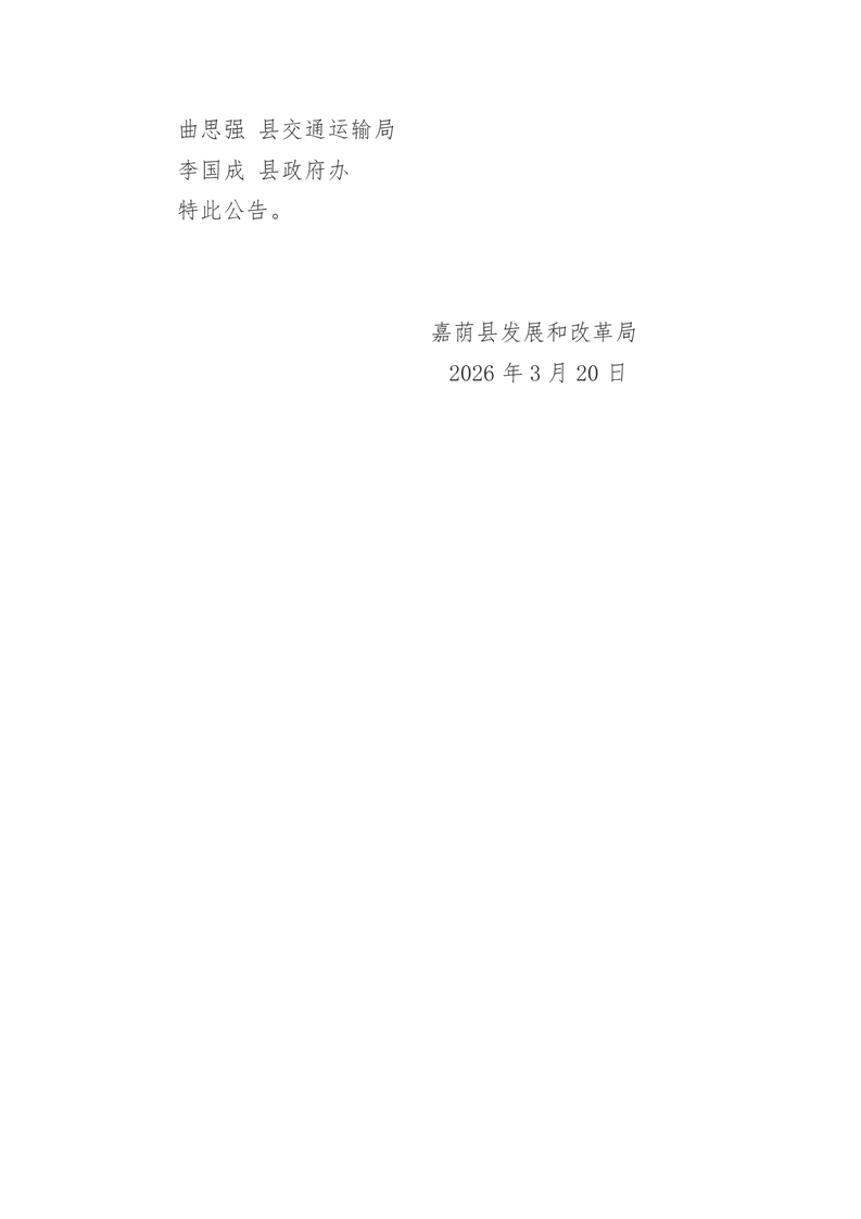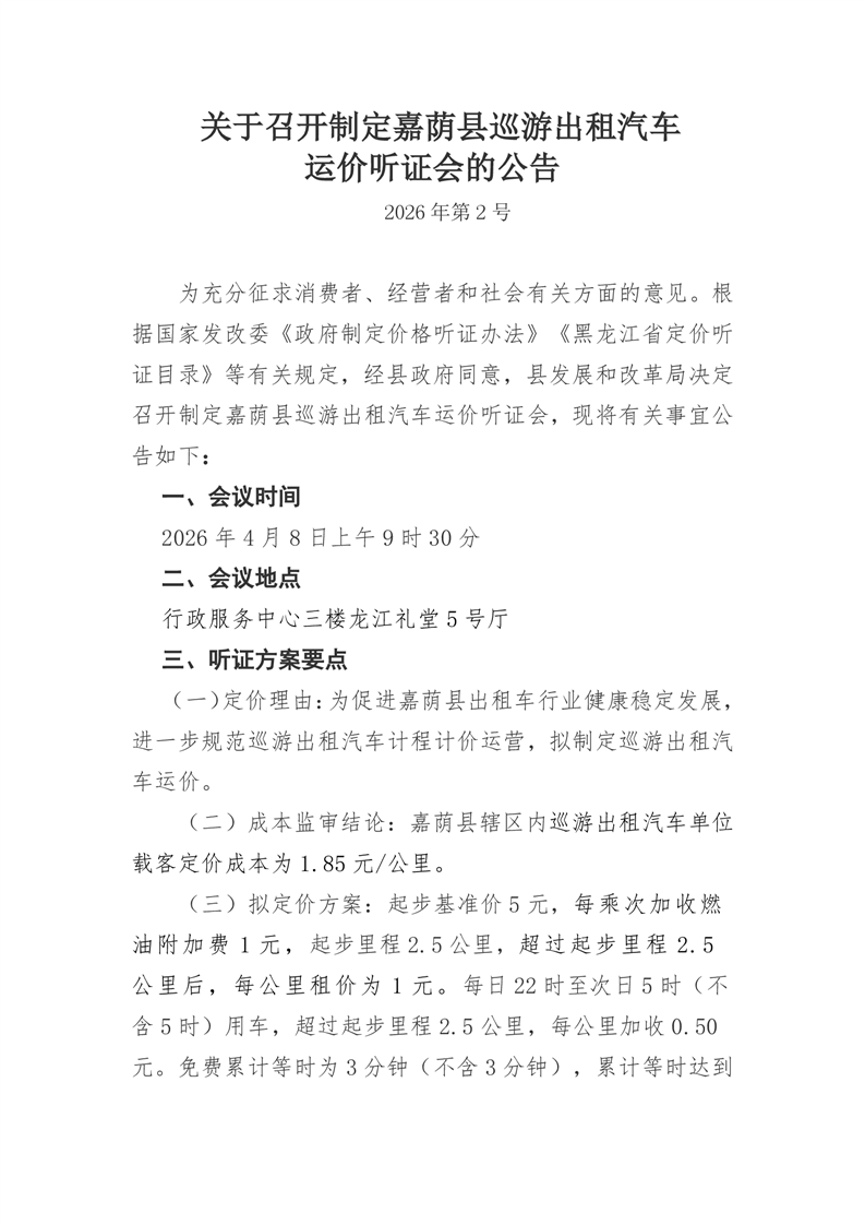 关于召开制定嘉荫县巡游出租汽车运价听证会的公告(2026年第二次)