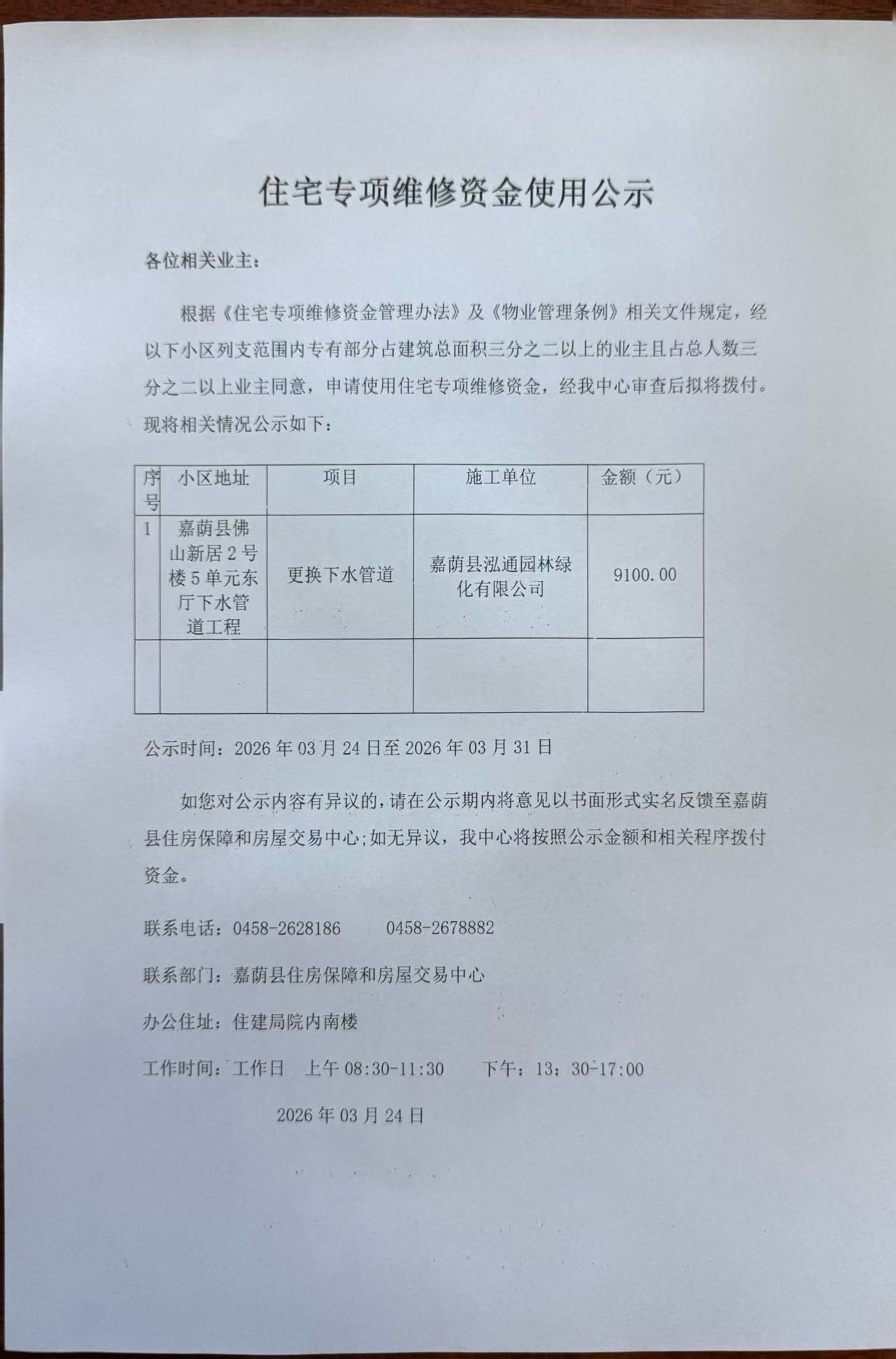 住宅专项维修资金使用公示