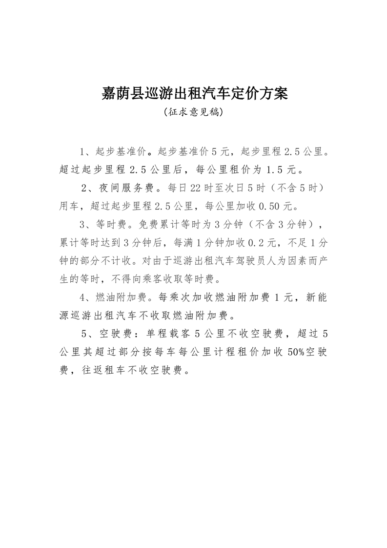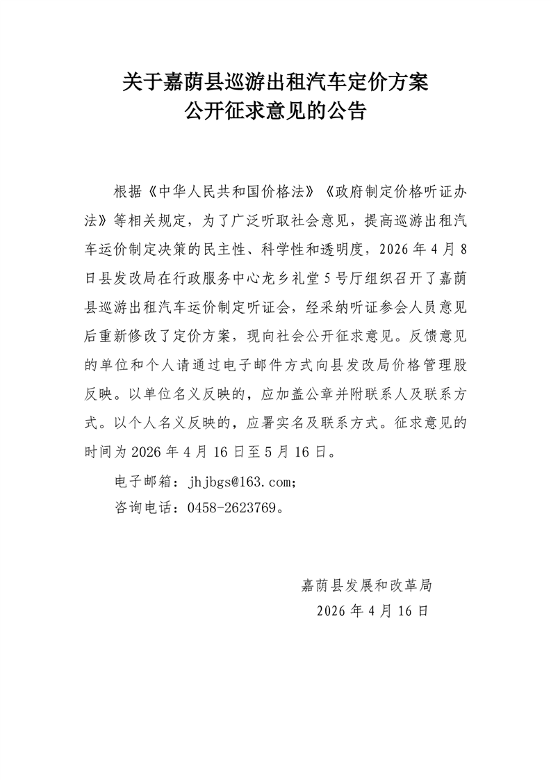 关于嘉荫县巡游出租汽车定价方案公开征求意见的公告(2026)