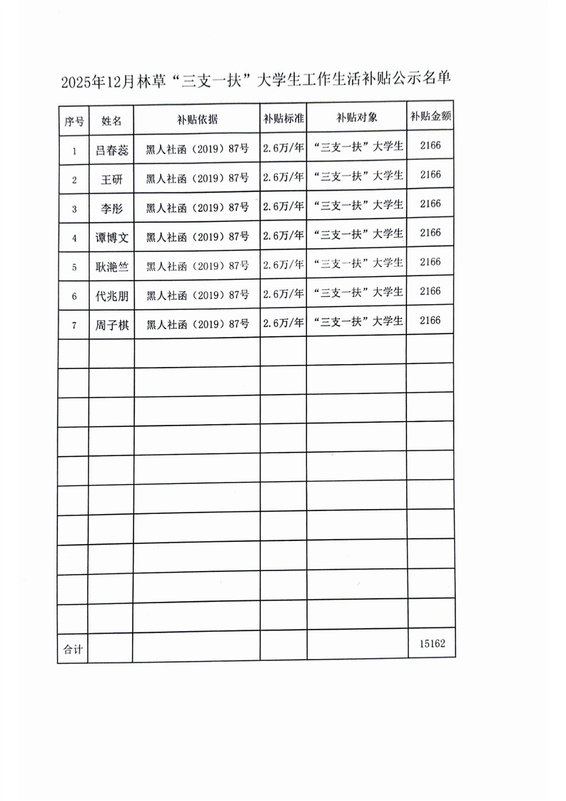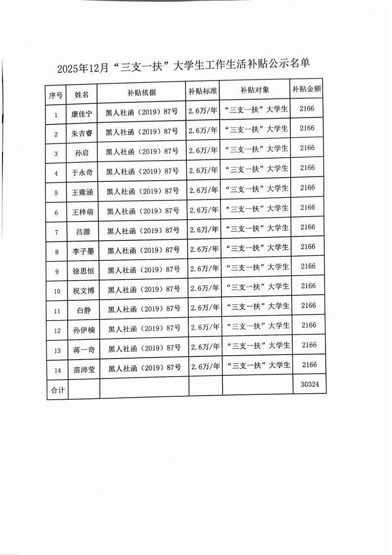 12月三支一扶大学生工作生活补贴公示名单