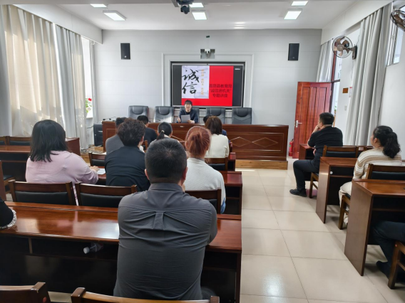 为充分发挥机关单位诚信表率作用,持续加强机关干部诚信教育,进一步宣传诚信理念、弘扬诚信文化。近期,嘉荫县教育局积极组织开展了“诚信进机关”专题讲座宣传活动,引导广大党员干部牢固树立“增强诚信意识,筑牢信用根基”观念,做到诚信立身、友善待人,用实际行动践行诚信,为营造诚信良好社会风尚发挥积极作用。