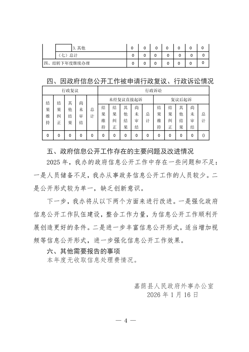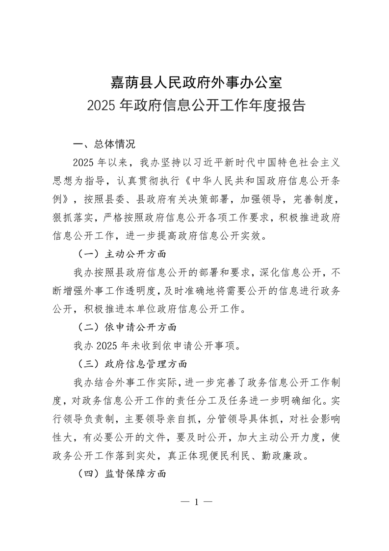 嘉荫县外事办公室2025年政府信息公开工作年度报告