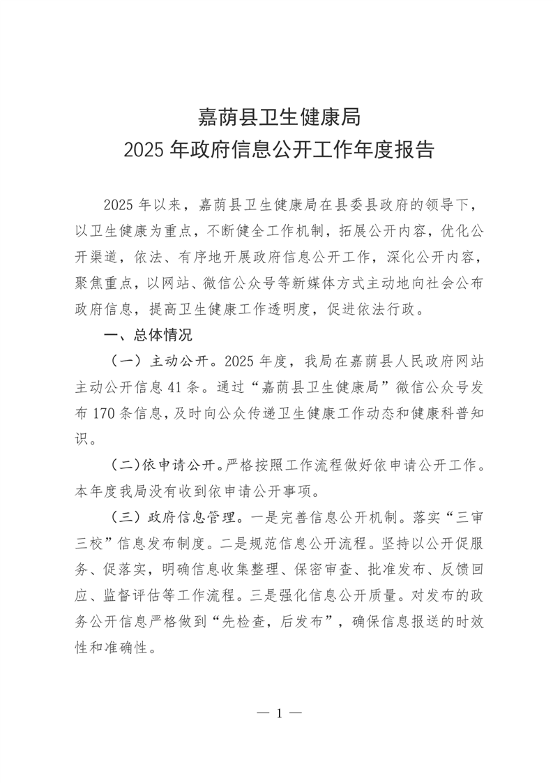 嘉荫县卫生健康局2025年政府信息公开工作年度报告