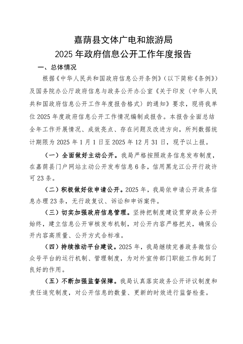 嘉荫县文体广旅局政府信息公开工作年度报告2025