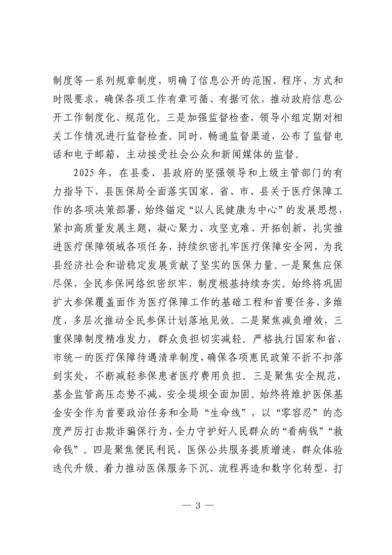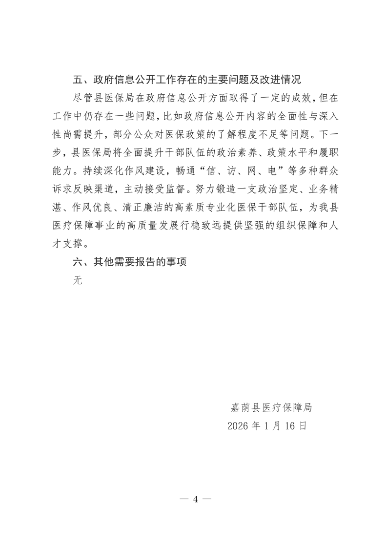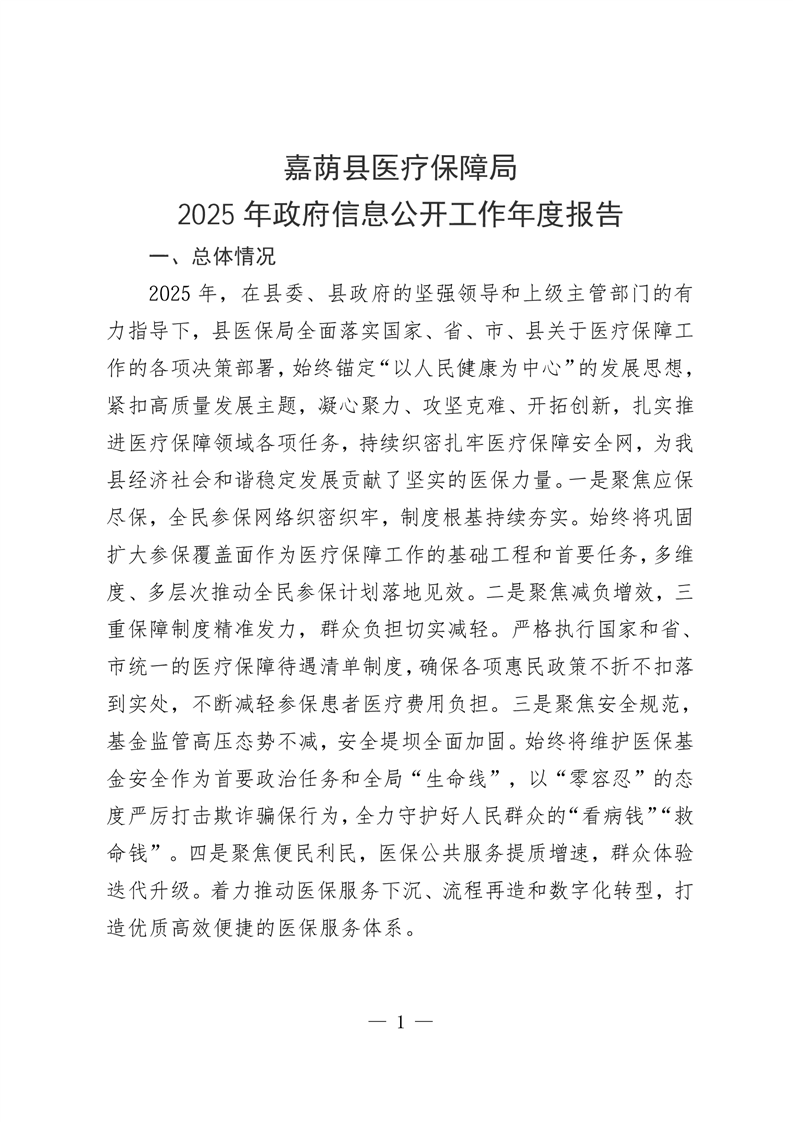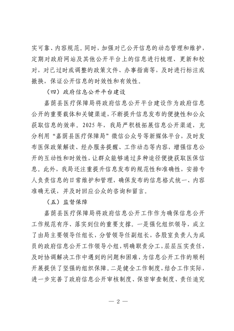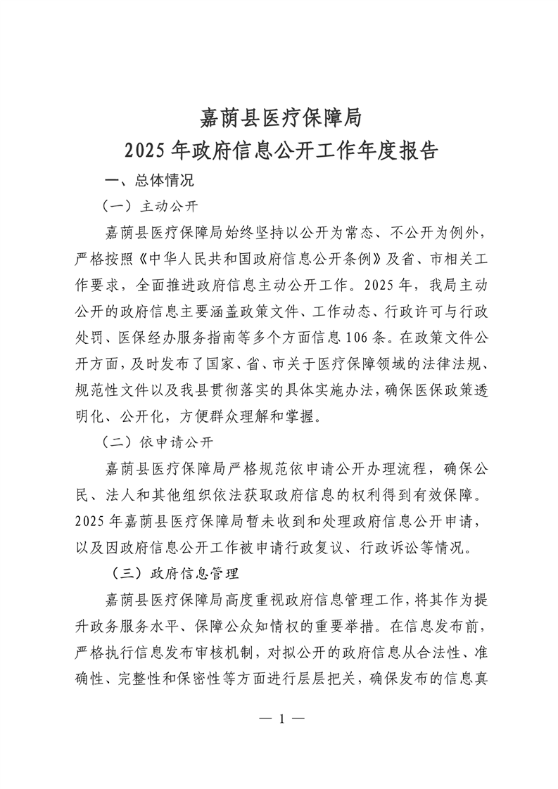 嘉荫县医疗保障局2025年政府信息公开工作年度报告