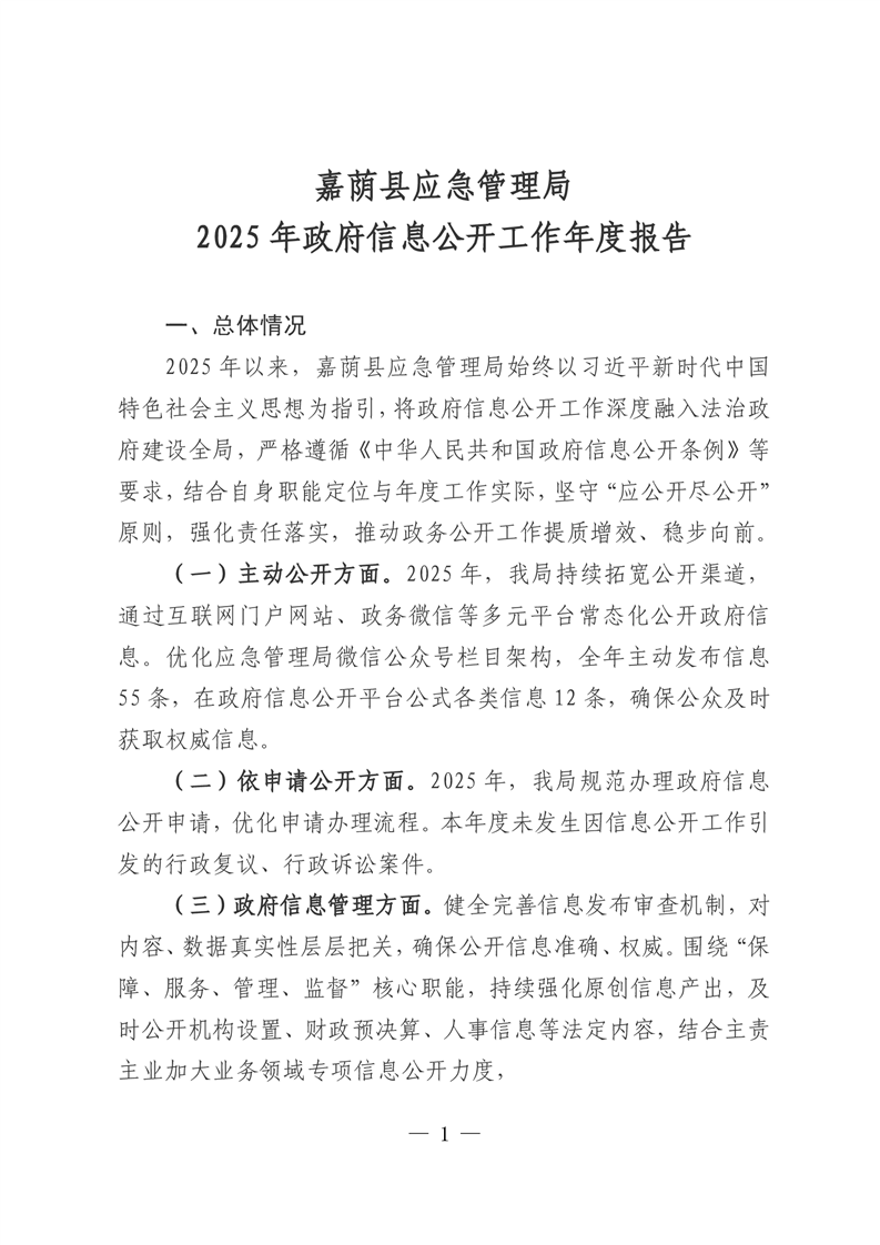 嘉荫县应急管理局2025年政府信息公开工作年度报告