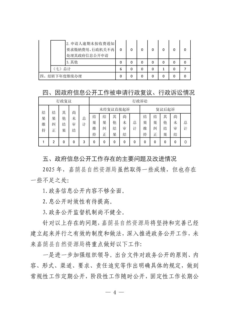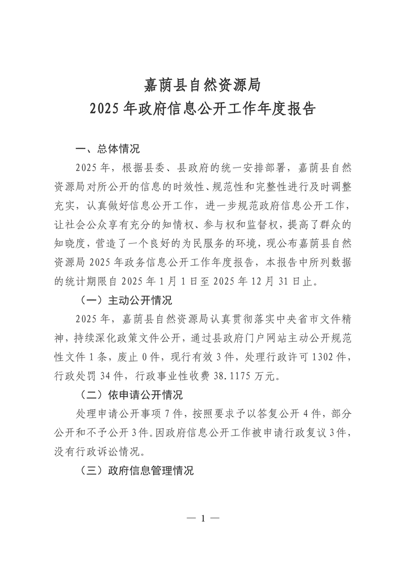 嘉荫县自然资源局2025年政府信息公开工作年度报告