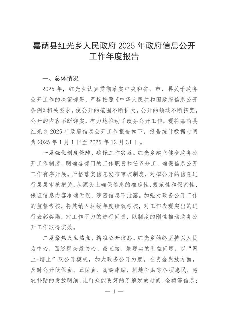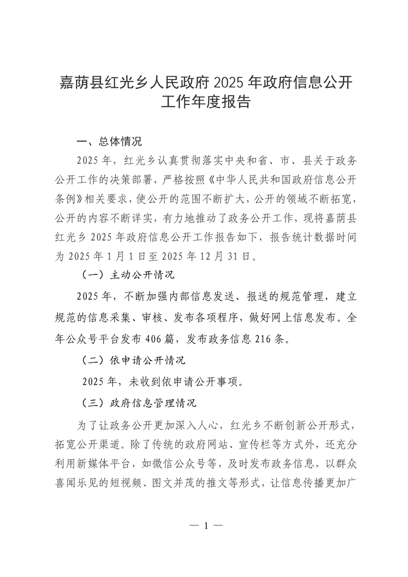 嘉荫县红光乡人民政府2025年政府信息公开工作年度报告
