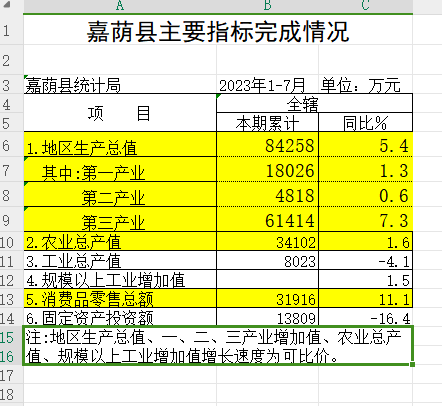 2023年嘉荫县主要指标完成情况(1-7月份)