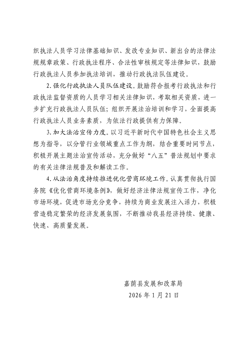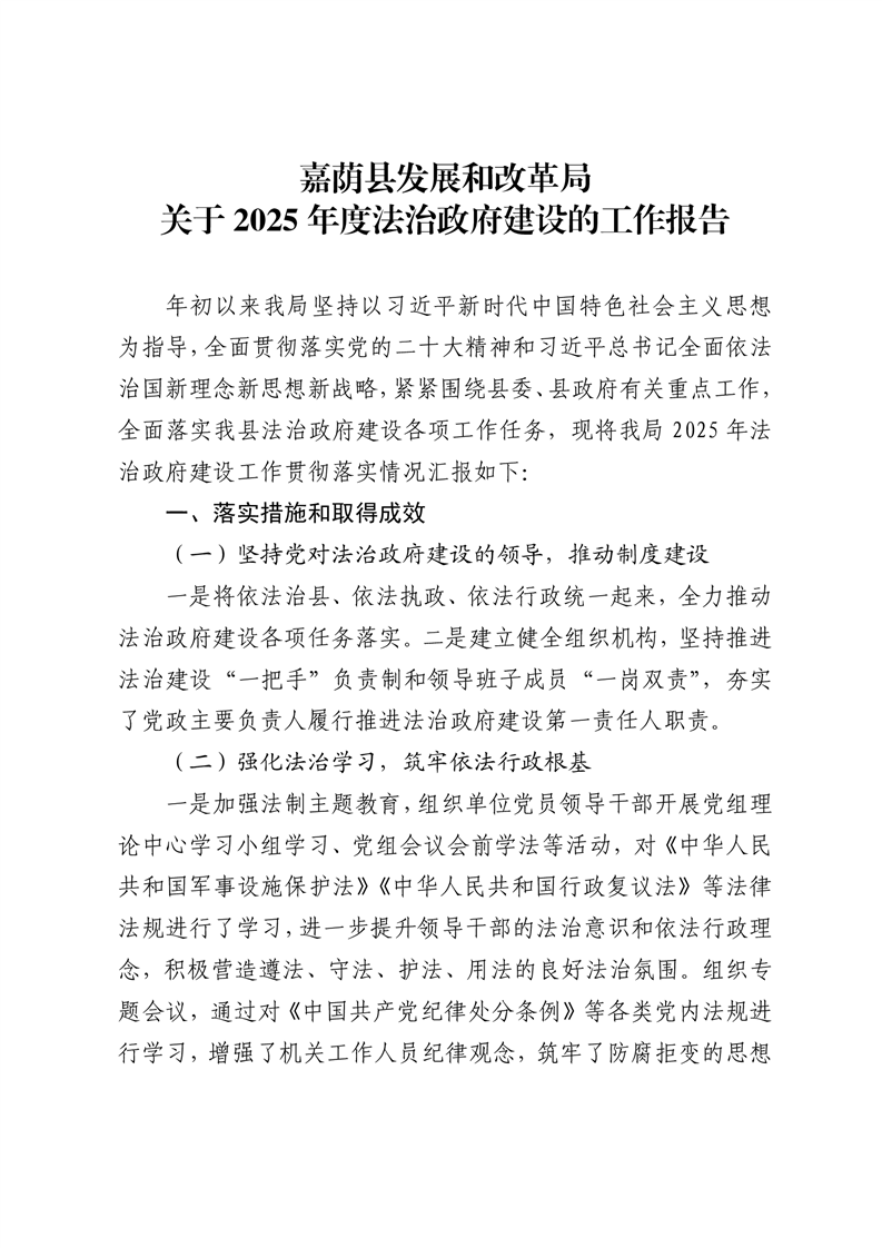 嘉荫县发展和改革局关于2025年度法治政府建设的工作报告