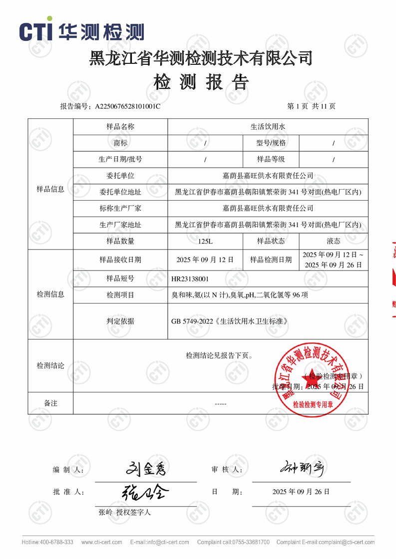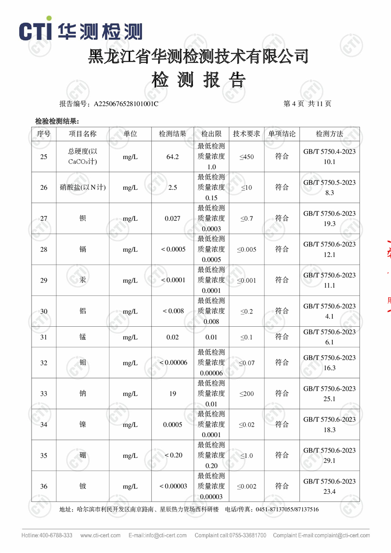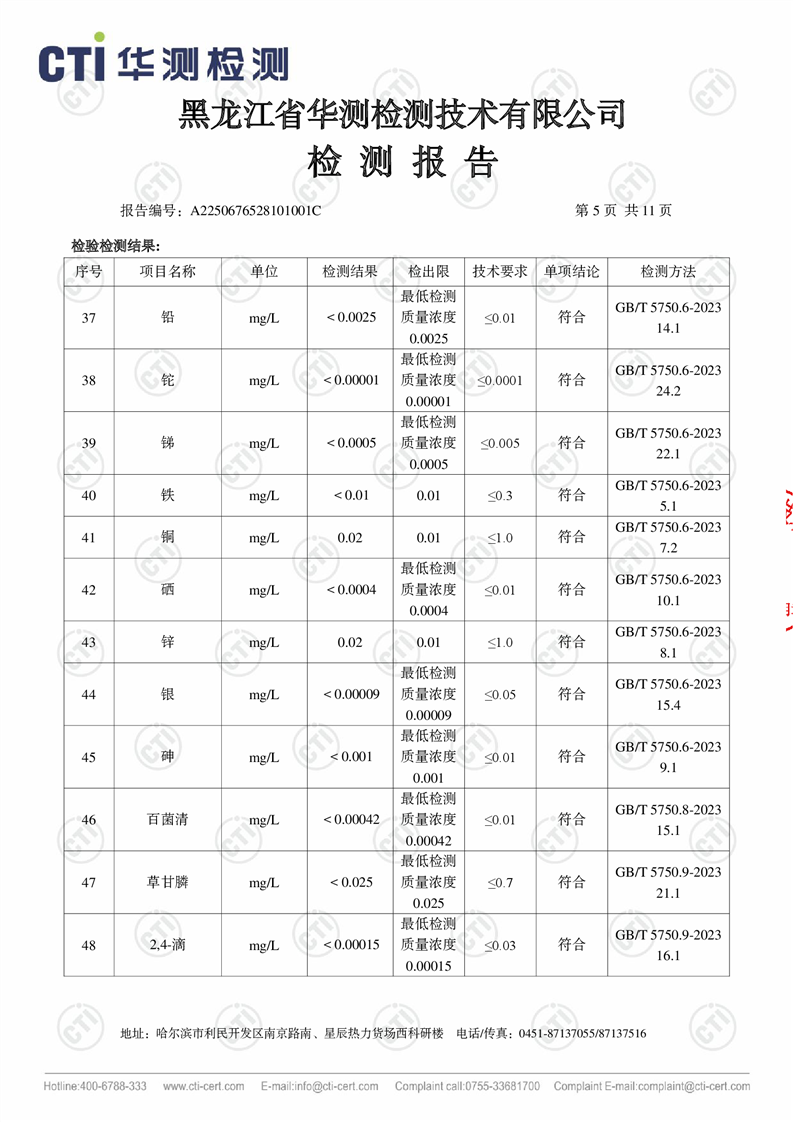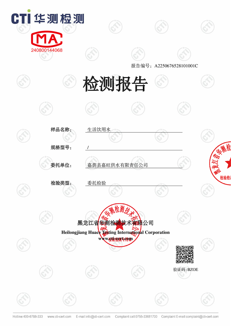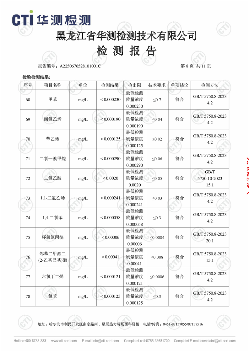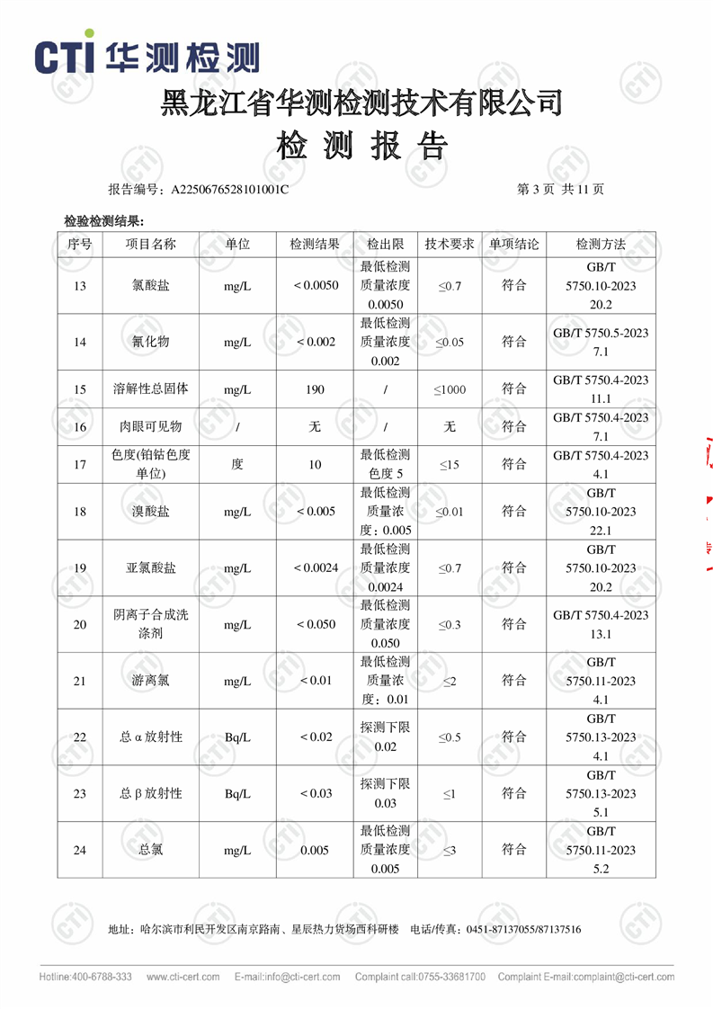 生活饮用水检测报告