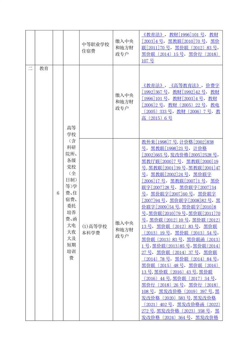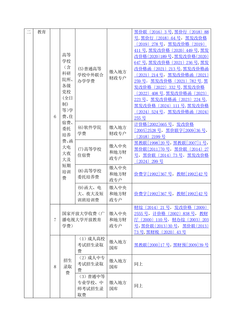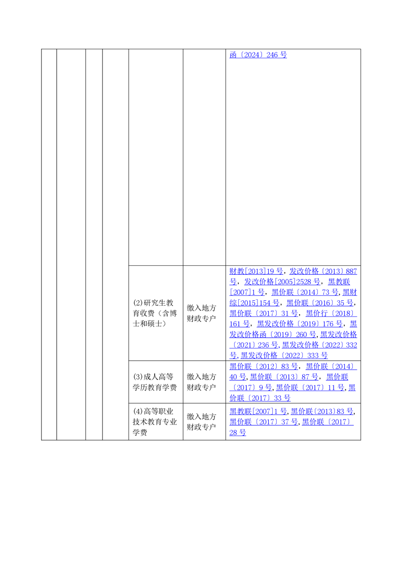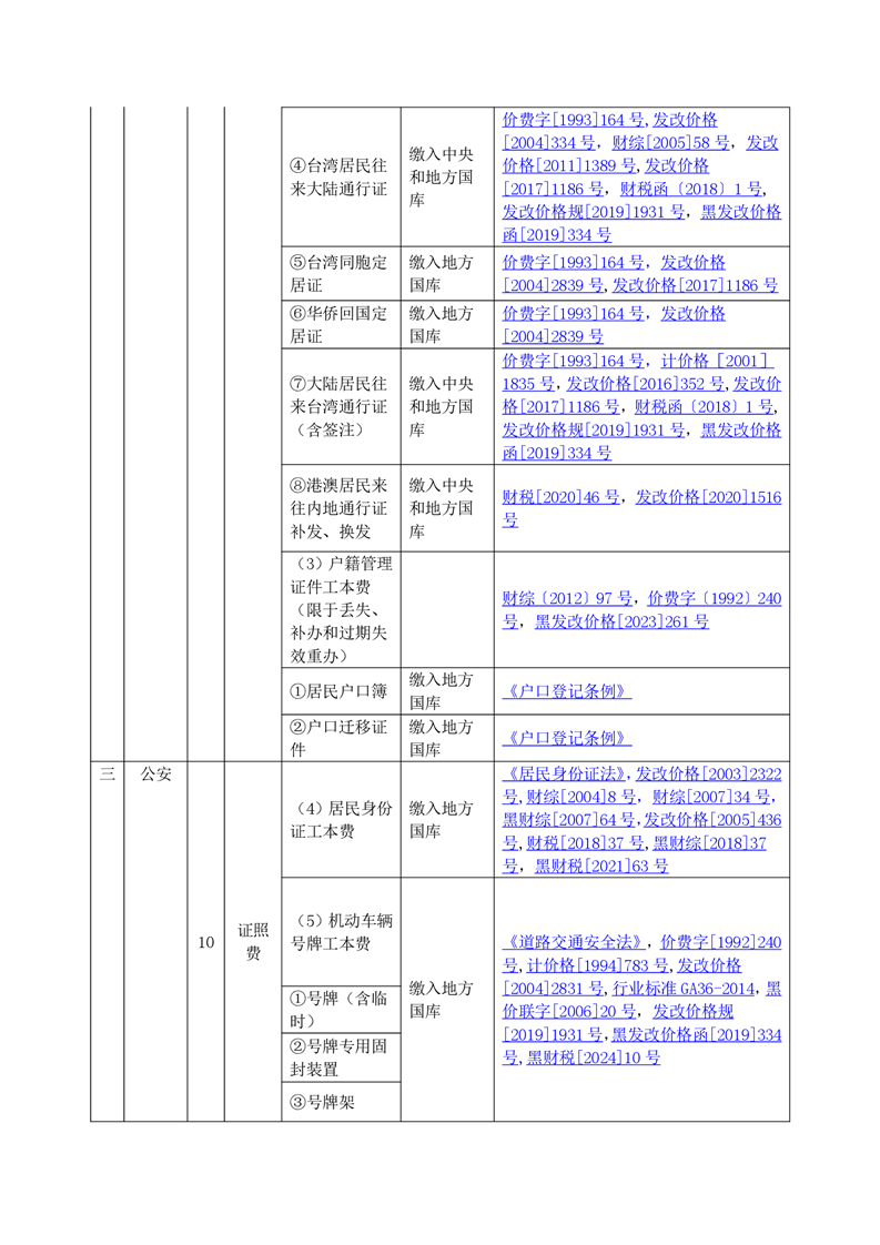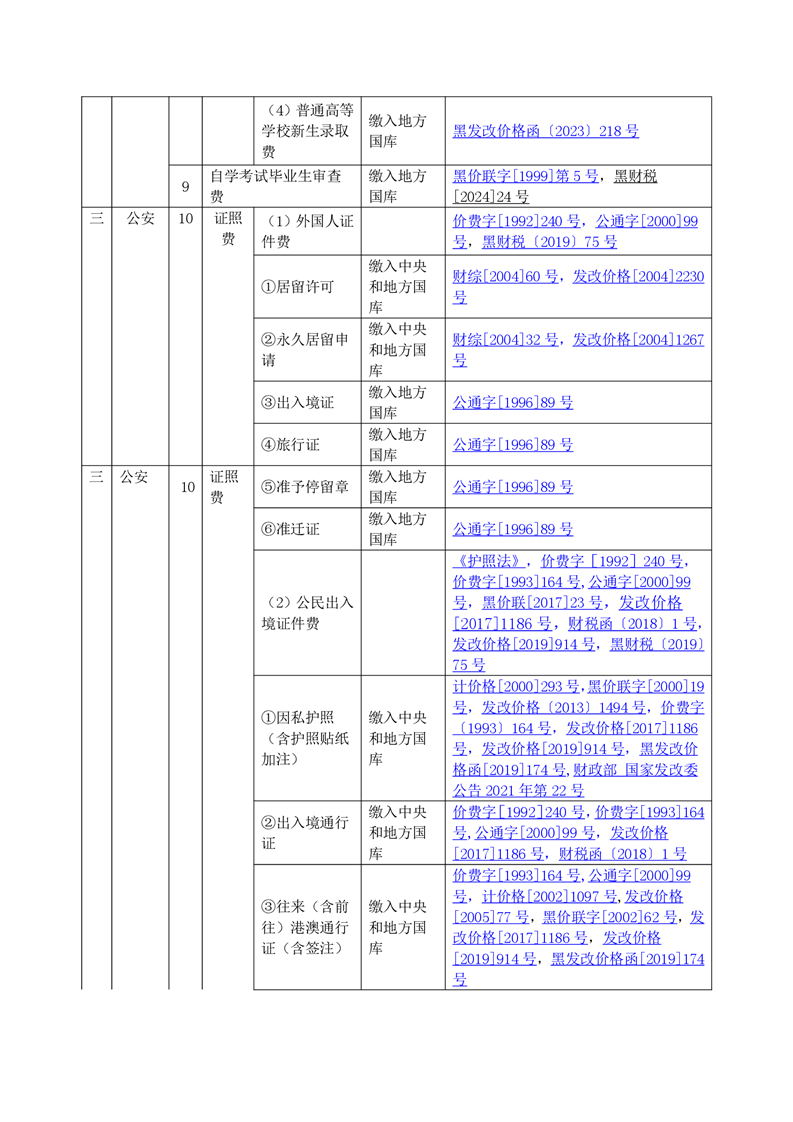 黑龙江省行政事业性收费目录清单