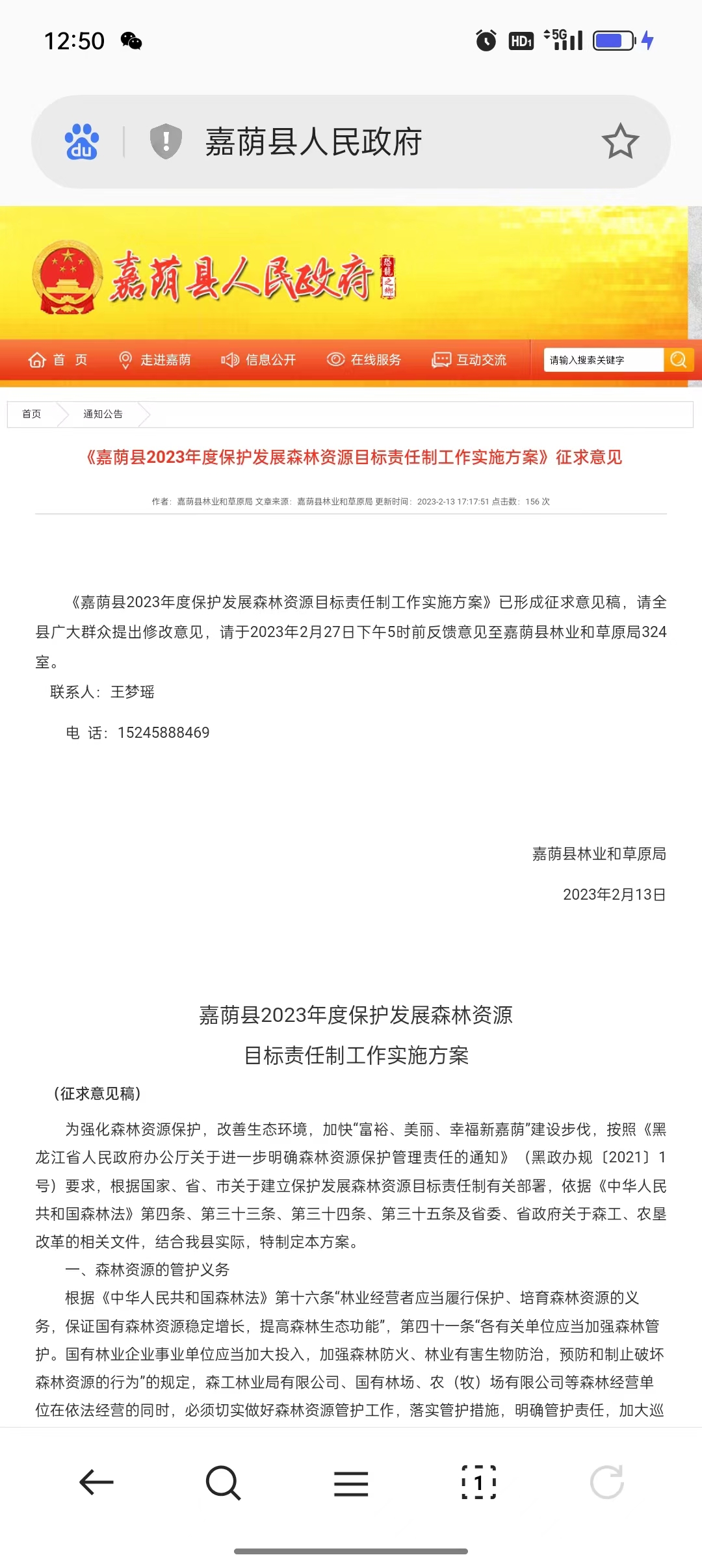 《嘉荫县2023年度保护发展森林资源目标责任制工作实施方案》意见公示