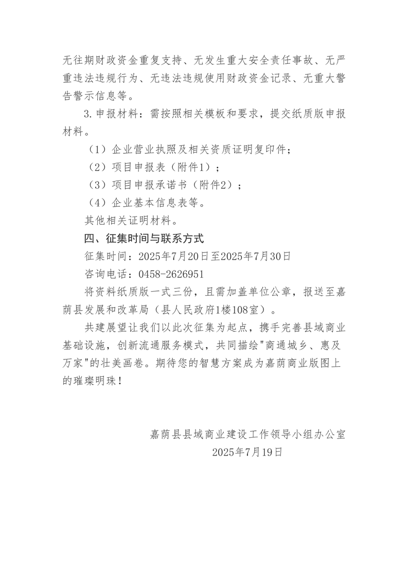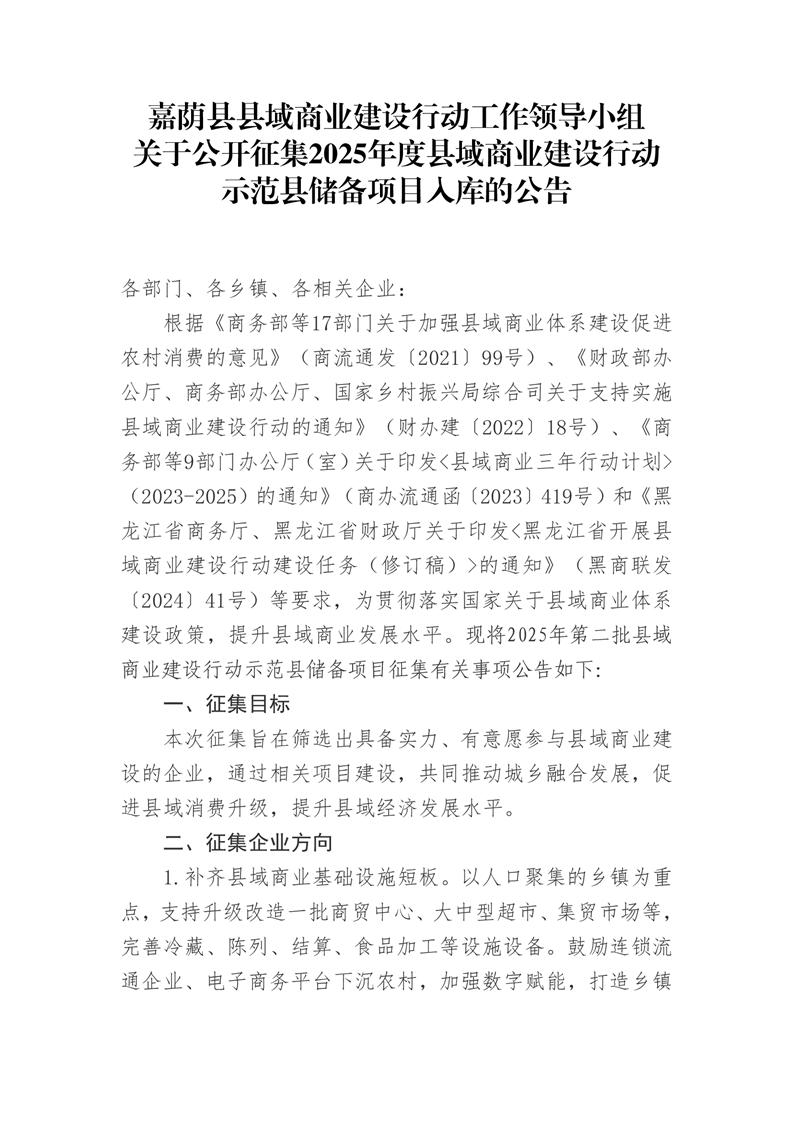 嘉荫县县域商业建设行动工作领导小组关于公开征集2025年度县域商业建设行动示范县储备项目入库的公告