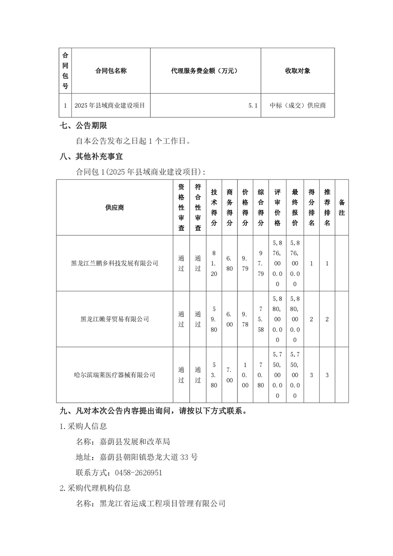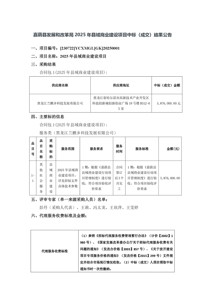 嘉荫县发展和改革局2025年县域商业建设项目中标(成交)结果公告